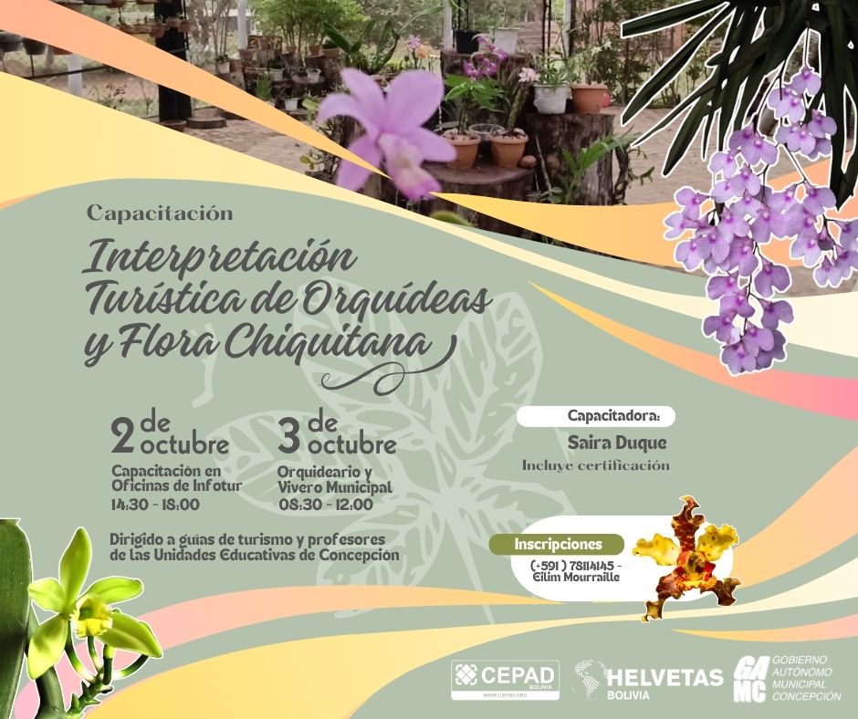 La capacitación forma parte del proyecto “Senda Viva de la Orquídea: Aprende, viaja, conserva”, ejecutado por el Centro para la Participación y el Desarrollo Humano Sostenible (CEPAD) en coordinación con el Gobierno Autónomo Municipal de Concepción y con el apoyo de Helvetas Bolivia. Con estas acciones, Concepción reafirma su identidad como Santuario de la Orquídea Boliviana y avanza en la construcción de un modelo de conservación y turismo sostenible en el Bosque Seco Chiquitano.