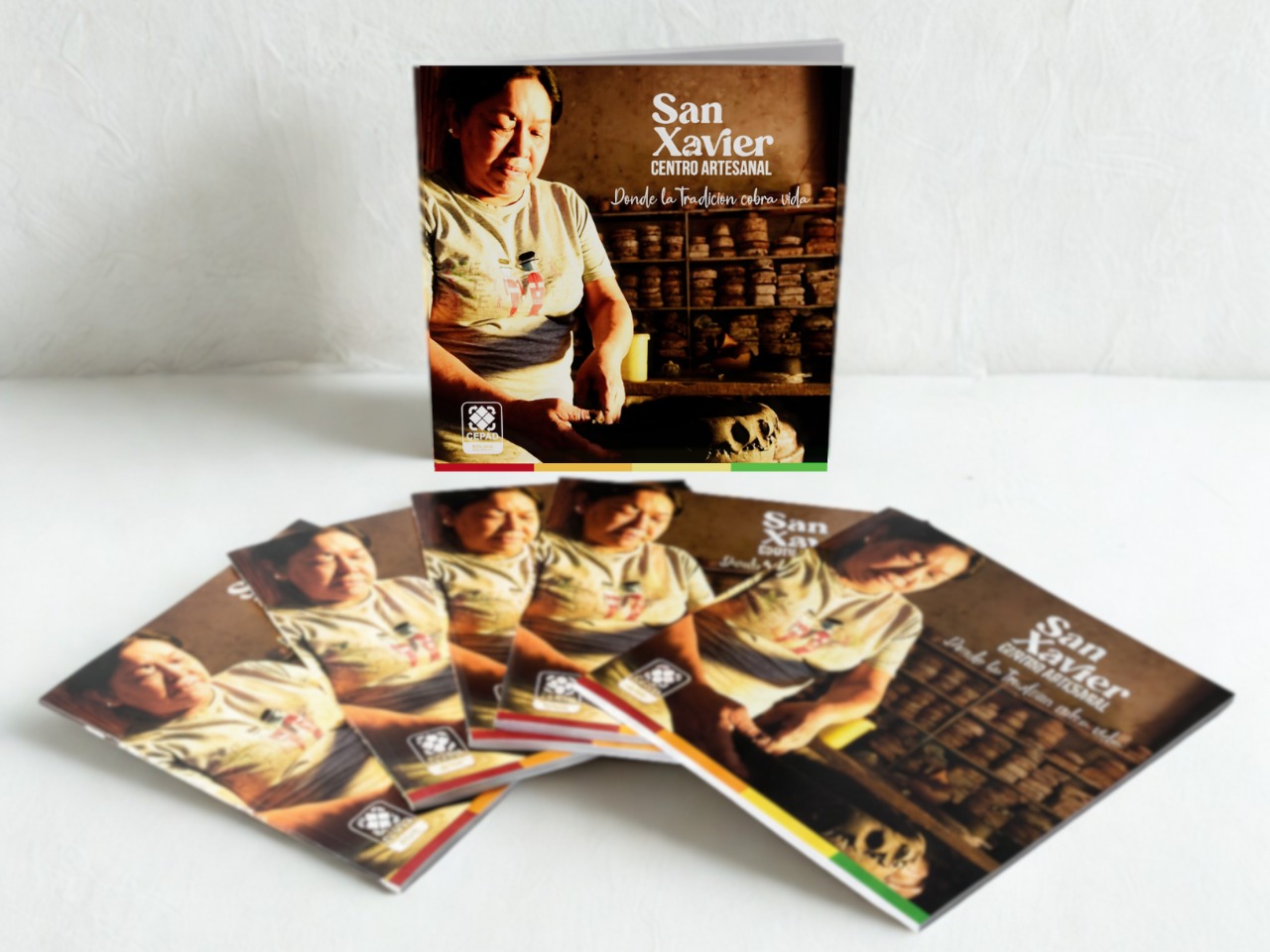 Cada sección del catálogo presenta una parte de la vida diaria y espiritual de San Xavier, resaltando el valor de las técnicas heredadas, la creatividad local y el vínculo profundo entre la comunidad y su patrimonio. Las fotografías muestran procesos, texturas y colores característicos del territorio, destacando la variedad de oficios que conviven en el centro.